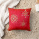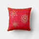 Drie gouden sneeuwvlokken met duidelijke neushoorns worden op een rode achtergrond gennesteld. Een lijst goudglitterstof lijsten het allemaal. Deze kussens zouden er mooi uitzien met je kerstdecor of iemand die een beetje voor de feestdagen wil spelen.