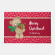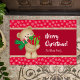 Kerstteddybeer met Gift en Snowflakes, rood Deurmat