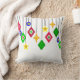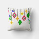 Deze werpkussens hebben een collectie ornamenten die omlaag hangen en zijn gemaakt van ruitvormige vormen, cirkels en sterren.