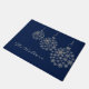 Stijlvolle vakantieplek gemaakt in donkerblauw, met beelden van zilveren toonsnowflake kerstbal-ornamenten. Pas de grijze tekst aan om te lezen wat je wilt. Wat een mooie manier om gasten bij je thuis te verwelkomen tijdens de feestdagen.
