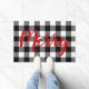 De rode "grove"tekst in een stijl van de calligrafische doopvont met het pet van de Kerstman op zwart-witte buffelvleid.