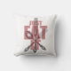 Voeg wat humor toe aan uw keuken of eetruimte met deze grafische kussen met antiek illustraties van zilverwerk, die worden ondersteund door de woorden 'Eet het gewoon' in vetgedrukte rode typografie. Modern en vers met een aanraking van waanzin, zou deze kussen een grappig cadeau maken voor het foodie in je leven. De achterkant is bedrukt met een coördinerend rood en wit gevlekt keukenpatroon. Retrodesign met een boerderijflair.