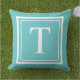 Keurige Turquoise Witte Vierkante Frame Monogram Buitenkussen