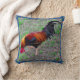 Het ontwerp van de tegel op dit Sierkussen is gemaakt van een originele foto van ZoeSpeak van een van de bekende hanen van Key West, Florida. De vogels zijn overal in de stad te horen kraaien. Hun veren zijn een reeks prachtige kleuren, van hun gebogen zwarte staartveren, tot bruin en sinaasappel op het lichaam en vleugels met een vleugje helderblauw, tot geelgoud op hun nek, tot hun felrode hoofden. Deze haan krabt aan zijn nek terwijl hij in het groene gras staat. De rand van het ontwerp van de tegel is middelblauw versierd met gele zonnen en kleine roze katjes, een ander symbool van Key West.