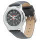 Kids classic leather strap watch shown in black with a cute pirate skull print.