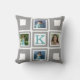 Upload vier van uw favoriete foto's en kies dan een coördinerende of contrasterende kleur voor de achtergrond en de grote monogram brief in het centrum om het nog verder te personaliseren! Hier getoond met vier foto's voor de jurk van het gradatieprom, een middelgrijze achtergrond en een overeenkomende soort aqua voor het monogram initiaal. De kwiek wordt opgesteld netjes binnen dubbele witte dozen, die tot een geometrisch patroon met stevige witte vierkanten in de vier hoeken leiden. De achterkant is stevige kleur om aan te passen. Werkt het beste met afbeeldingen die al vierkant gevormd zijn, perfect voor instagramfoto's! Het zal automatisch uw afbeeldingen bebouwen om het vierkant te passen/te vullen. Kies uw kleuren voor de kussen en de tekst gebruikend de geavanceerde aanpassingsopties. Alle foto's zijn van mij, vervangen door je eigen foto's.