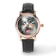 Mooie dames-vierkant horloge met zwarte lederen band, schattige hond K-Cee foto, K-Cee Time. Creëer je eigen unieke tijdstuk of persoonlijke gave met je eigen tekst of foto, een uitstekende gave voor mama voor Moederdag of altijd.