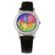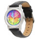 Kleurrijk abstract ontwerp van wijzerplaat, waterverf look, levendige kleuren, Romeinse cijfers.