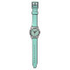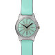Koperketting met bleke gele kralen. Het segment van de ketting wordt herhaald zodat de eindpunten aan de vijf minieme kloksegmenten richten (waar de cijfers zouden zijn). De aqua achtergrond van Lite kan worden aangepast om keus van bandkleur aan te passen.