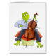 Deze schattige kikker zit op een rode broodstool (alleen logisch, toch?) en speelt een solo op een mooie, glanzende cello. Misschien maakt hij zich klaar om auditie te doen voor het orkest van de bosopera, waar zijn grote broer vrij baritone is.