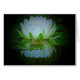 Een kikker rust voor een witte waterlelie en wordt omgeven door de lelie en het reflecteert op het wateroppervlak.