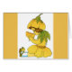 Een zoet, klein kind wordt gekleed in een geel boterbekervormig jurk en houdt een geel bloemvormig bekertje vast. Afbeelding van een verhaal op een middelgrote gele achtergrond.