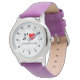 Kinderen roestvrijstalen Paarse lederen bandhorloge I Heart