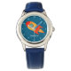 Blauw, raket, ruimte, astronaut, peuter, kijk voor kinderen. Custom, Kinder, Naam, staalblauw jongenshorloge. Personaliseer het met de naam van je kind.