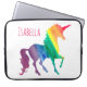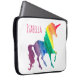 Cool Rainbow Waterverf Unicorn Kinder Laptop Neopree Hoesje. Pas dit leuke en kleurrijke unicorn cadeau aan in een roze lichtroze lettertype. Silhouette eenhoorn in een regenboog van waterverf penseelstreken van rood, oranje, geel, groen, blauw en paars. De witte achtergrond laat de heldere kleuren prachtig uitkomen. Fun gift voor kinderen, tweens en tieners die van eenhoorns en magische wezens houden. Kleurrijk, modern en stijlvol.