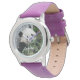 Het gezicht van dit schattige reuzenpanda horloge is mijn originele foto genomen in Chengdu, China. Wat een geweldig kerst- of verjaardagscadeau voor een kind dat van panda's houdt! Het kan worden gepersonaliseerd met de naam van het kind, bijvoorbeeld tekst kan worden verwijderd. De band is paars, maar is verkrijgbaar in andere kleuren. Alle rechten voorbehouden © 2020 Marcia Socolik.
