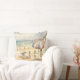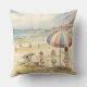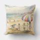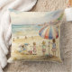 Dit kussen is versierd met Kinderen spelen op een zandstrand waterverf schilderij.