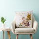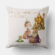 Dit betoverende gooi kussen beschikt over een klassieke folk en sprookjesverhaal thema op een zachte roze achtergrond. De afbeelding toont rechts een prinses en kikkerprins, met in de verte een koning en hun kasteel. De uitdrukking "Once upon a time" is afgedrukt tussen de illustraties in een grillige gouden lettertype.