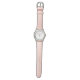 Een opvallend roze kinderhorloge, met leren armband.