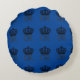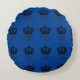 Koning Charles III Coronation ronde kussen. Wees comfortabel op je kussen voor het grote feest! Coronatiecentrum op koninklijke blauwe achtergrond.