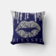 Kiss Lips Silver Grey Drips Glitter Navy Blessed Kussen