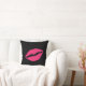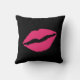 Vet, helder, roze lippen op een zwart achtergrondaccent dit kussen.