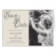 Het zoenen trouwpaar in een monochrome bruiloft-kaart waarop het afbeelding, de gelegenheid, de namen, de locatie en de datum in de sjabloon kunnen worden aangepast.
