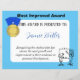 Erkenning van de student die de meeste groei en verbetering heeft laten zien in zijn academische of persoonlijke ontwikkeling. Deze schooldiploma-uitreiking is om de meest verbeterde leerling te geven. Dit is een geweldige bron voor leraren en scholen, of thuisscholen. U kunt elk element wijzigen als u dat wilt, aanpassen en personaliseren.