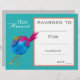 Een stijlvolle modern class award met schattig waterverf vogeltje afbeelding ideaal om een jonge student aan te moedigen. Je kunt je eigen gegevens invullen. Een geweldige bron voor elk type lesgever in de klas.