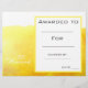 Een stijlvol modern certificaat voor klas kunstprijs met een leuke gele verfspat aquarel afbeelding, perfect voor het aanmoedigen van een jonge kunststudent. Je kunt je eigen details invullen. Een geweldige hulpbron voor elk type klaslokaal leraar.