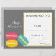 Een stijlvolle prijs voor een modern klassecertificaat met een schattig kleurrijk macaroncakes afbeelding dat perfect is om een jonge student aan te moedigen. Je kunt in je eigen details schrijven. Een geweldige bron voor elk type klaslokaalleraar.