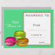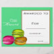 Een stijlvolle prijs voor een modern klassecertificaat met een schattig kleurrijk macaroncakes afbeelding dat perfect is om een jonge student aan te moedigen. Je kunt in je eigen details schrijven. Een geweldige bron voor elk type klaslokaalleraar.