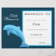 Een stijlvolle prijs voor een modern klassecertificaat met een schattig dolfijnvriendelijk afbeelding dat perfect is om een jonge student aan te moedigen. Je kunt in je eigen details schrijven. Een geweldige bron voor elk type klaslokaalleraar.