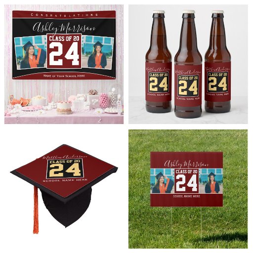 Klasse van 2024 Bourgogne Donkerrood Afstuderen Fo Spandoek