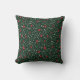 Dit prachtige vakantiekussen heeft een met de hand getekend bloemmotief en groen patroon in klassieke, traditionele kerstkleuren van rood, groen en ivoor over een aangepaste kleurenachtergrond (weergegeven in donkergroen). Stijlvolle inrichting die past bij elk huis, of uw look is rustiek, eigentijds, huisje, boerderij, of traditioneel.