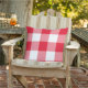 Een klassieke rode en witte buitenkussen met een groot gingham karo patroon. Het oversized rode karo brengt een vrolijke, all-American accent naar patio meubels, veranda zitplaatsen of picknick-stijl buitenruimtes. Een kwintessentieel patroon voor zomer entertainment en patriottische decoratie.