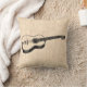 Een akoestische gitaar met een thema gooit kussen met ouderwetse illustraties en een beige achtergrond van het scriptpapier.