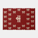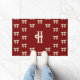 Een klassieke monogram deurmat met een elegant boogpatroon op een feestelijke rode achtergrond. Perfect voor de feestdagen.