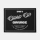 Papa's garage of een naam-hotrod garage met witte retro garage script digitale grafisch op een zwarte achtergrond. Gebruik enkel personaliseer deze optie van sjabloon om de tekst aan pak te veranderen.