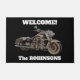 Deze bruine motorfiets met zadelzakken is een klassieker, geliefd bij jonge en oude fietsers.