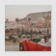 Klassieke Rode auto die warme luchtballonnen in Turkije bekijkt