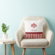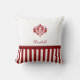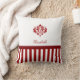 een klassieke rode en witte gestreepte patroonkussen met een elegant rood demask embleem. Pas dit prepy en stijlvol ontwerp aan door jouw naam toe te voegen.