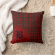 Stijlvolle, platte kussens, gedaan in het traditionele Brodie familie tartan-patroon van rood, zwart en geel. Een rood cirkelgebied, onderaan links vooraan, heeft een zwart monogram met één letter klaar om zich aan te passen aan uw familieinitiaal. Een handjevol accent gooit een kussen met een klassiek patroon en een monogram.