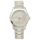 Ik heb gisteren dit horloge ontvangen. Het wijkt echter behoorlijk af van de referentiefoto op de website. Ik had iets zilverkleurigs besteld, dacht ik, maar nu blijkt het vooral goudkleurig te zijn. De afbeelding is ook veel te donker en het horlogebandje is bijna mokka kleurig en ook echt heel anders dan op de foto. Kortom ik ben erg teleurgesteld en heb er in totaal wel €70 voor betaald. Ik wil het graag retourneren en ga hier niet meer bestellen. Heel jammer dit. .