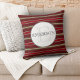 Dit is een klassiek rood-beige witte strepen ontwerp op maat van naam en monogram gecentreerd binnen een cirkel.