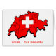(klik om te bewerken)Rode kaart van Zwitserland met het witte Zwitserse kruis erboven. Het type eronder zegt "klein maar mooi".