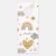 Little Girl's hand geschilderd waterverf boho regenboog weer betekent dat er heldere luchten voor ons liggen! Schattigee en kleurrijke regenbogen, zonnen, sterren, wolken en regendruppels. Gepersonaliseerd in een perzik hart met naam. Aarde getint palet is trendy van een gezellige slaapkamer ruimte. Omgekeerd naar Prinses gezicht "Goedemorgen!"