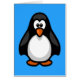 Kute zwarte geanimeerde kleine pinguïn op een blauwe achtergrond.