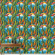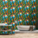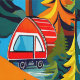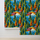 Retro rode campers in natuur kleuren blauw, sinaasappel, rood en groen. Cool stick en schil behang voor degenen die houden van kamperen.