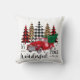 Een leuk en schattig kerstkussen met een oude, rode vrachtwagen met patroonbomen. U kunt dit kussen op de rug met uw eigen naam of tekst personaliseren. Ideaal voor thuisdecor of cadeau voor iemand voor de feestdagen.